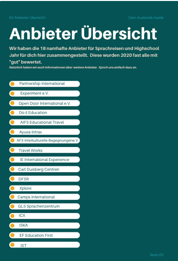 Wir haben ein sehr großes Netzwerk erfahrener Menschen die im Ausland waren! Egal ob ein High School Jahr an einer öffentlichen oder privaten Schule, oder ein Sprachreise.